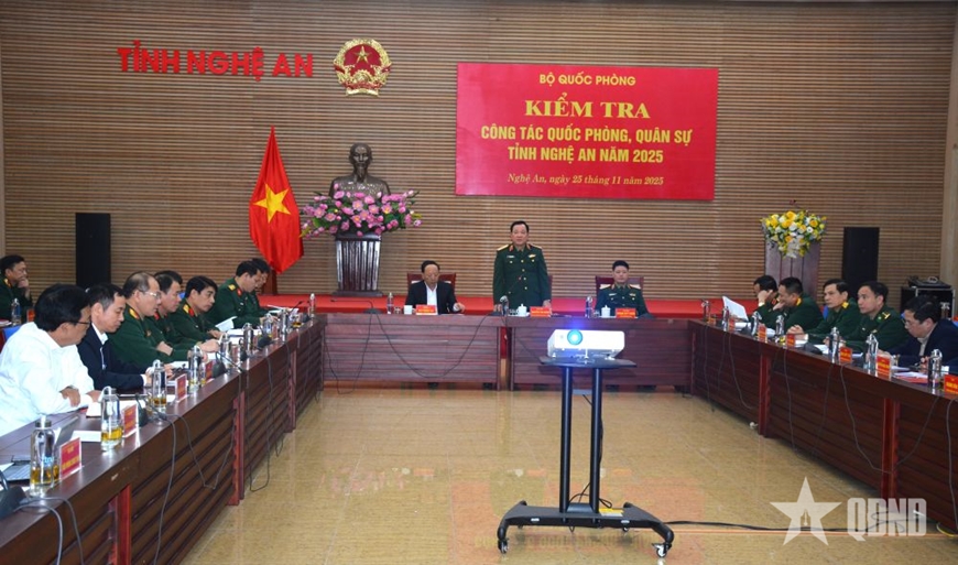 Kết luận kiểm tra, đoàn công tác Bộ Quốc phòng đánh giá: Năm 2024 và 10 tháng năm 2025, tỉnh Nghệ An đã lãnh đạo, chỉ đạo, triển khai tổ chức thực hiện tốt nhiệm vụ công tác quốc phòng, quân sự. Một số nhiệm vụ hoàn thành xuất sắc.