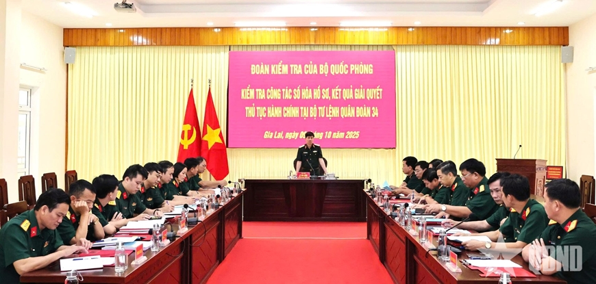Trong hai ngày 8 và 9-10, Đoàn công tác Bộ Quốc phòng do Thiếu tướng Lê Văn Dũng, Phó chánh văn phòng Bộ Quốc phòng làm trưởng đoàn đã kiểm tra công tác số hóa hồ sơ, kết quả giải quyết thủ tục hành chính tại Quân đoàn 34.