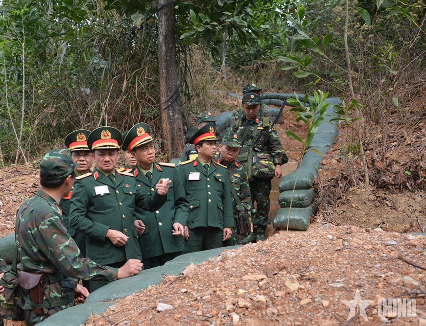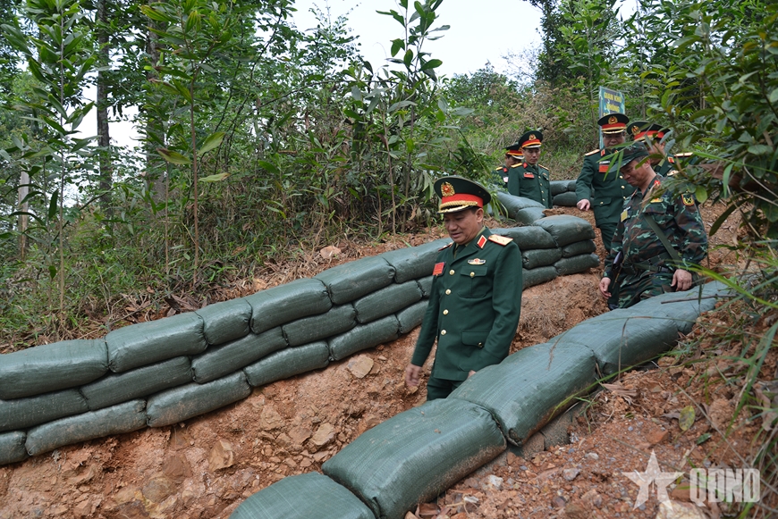 | Trung tướng Lê Văn Hướng kiểm tra hệ thống công sự trận địa căn cứ chiến đấu của Bộ CHQS TP Hải Phòng. |
