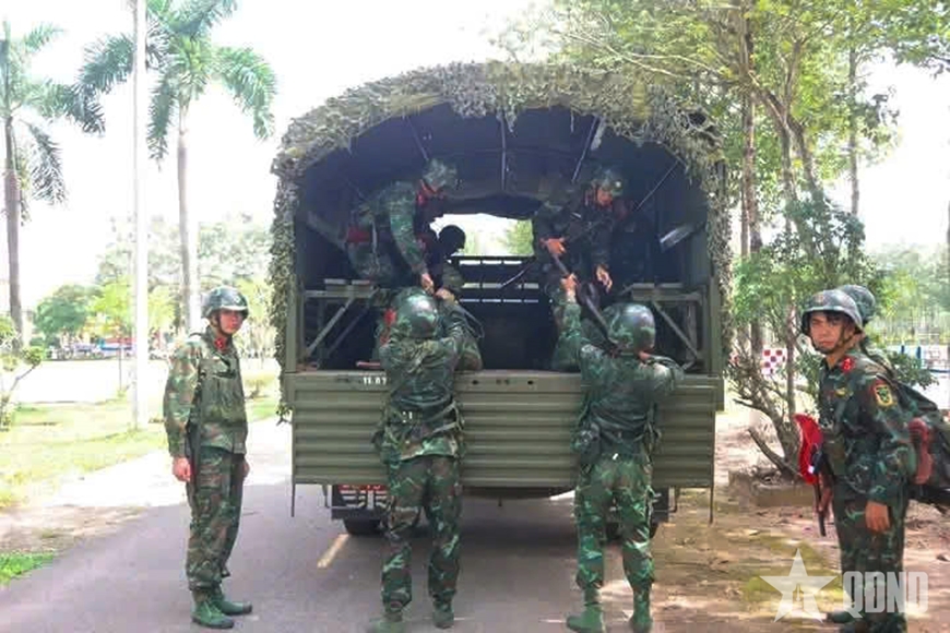 | Cán bộ, chiến sĩ Trung đoàn 271 thực hành cơ động sẵn sàng chiến đấu. |
