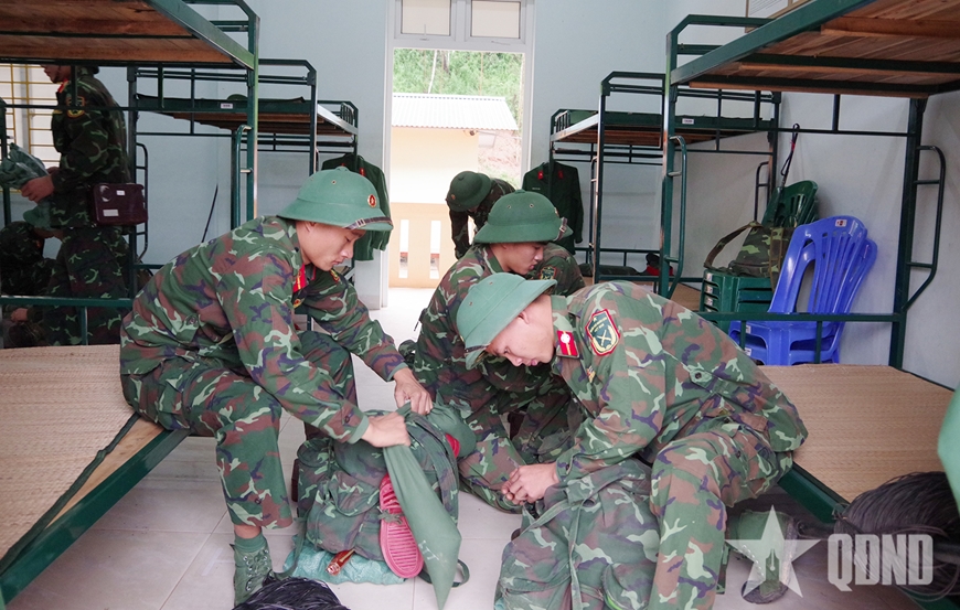 | Cán bộ, chiến sĩ Tiểu đoàn 1, Trung đoàn 123, Bộ CHQS tỉnh chuẩn bị quân tư trang cá nhân thực hiện công tác kiểm tra về chuyển trạng thái sẵn sàng chiến đấu thực hiện nhiệm vụ A2. |