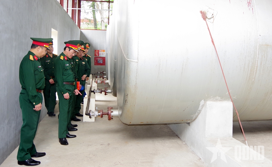 | Đoàn kiểm tra tiến hành kiểm tra hệ thống kho xăng dầu của Bộ CHQS tỉnh Lạng Sơn. |