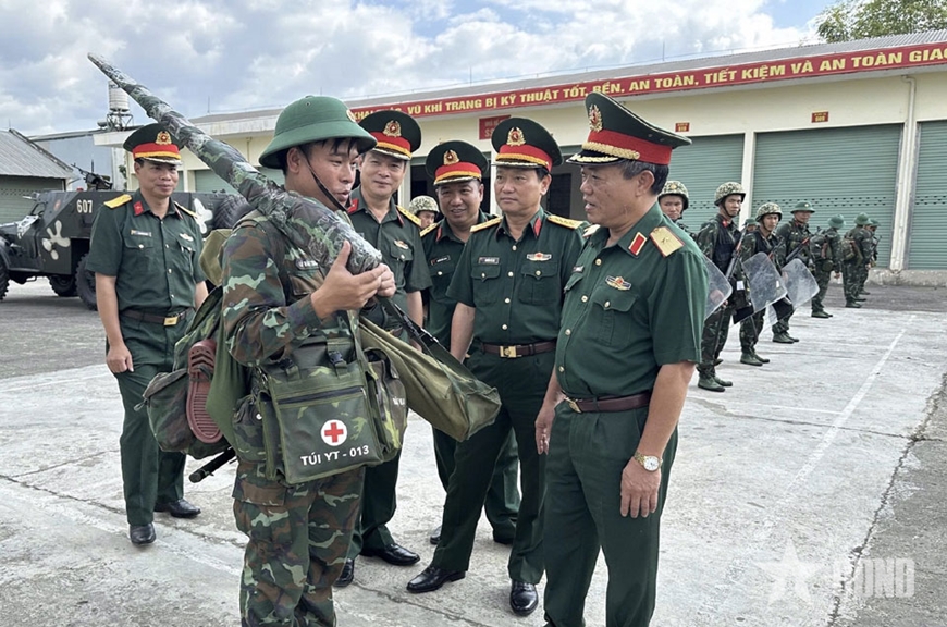 | Thượng tướng Huỳnh Chiến Thắng kiểm tra hoạt động SSCĐ và cơ động lực lượng của Trung đoàn 82. |