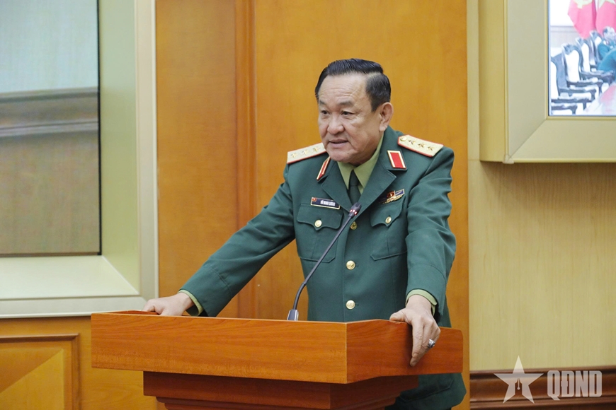 | Thượng tướng Võ Minh Lương phát biểu tại hội nghị. |
