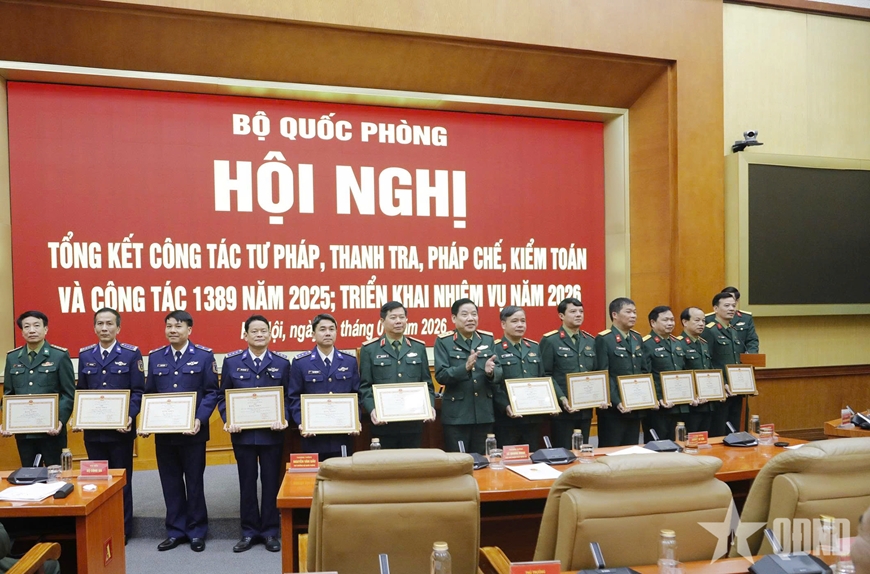 | Thủ trưởng Bộ Quốc phòng trao Bằng khen của Bộ trưởng Bộ Quốc phòng tặng các tập thể, cá nhân có thành tích xuất sắc trong thực hiện nhiệm vụ năm 2025. |