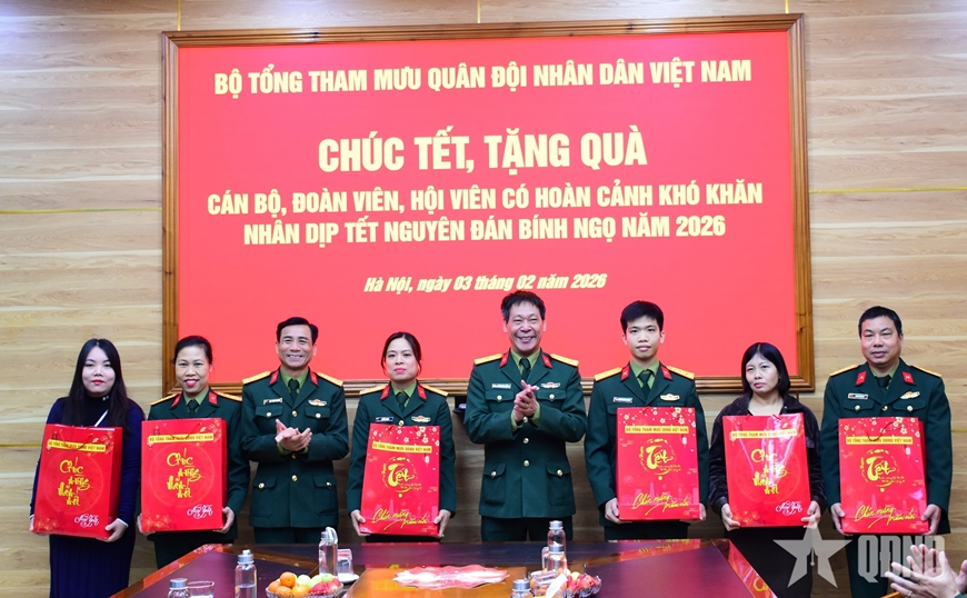 Riêng dịp Tết Nguyên đán Bính Ngọ 2026, Bộ Tổng Tham mưu đã trao 174 phần quà, với tổng kinh phí 233 triệu đồng tặng đoàn viên, hội viên có hoàn cảnh khó khăn. Qua đó động viên cán bộ, nhân viên, người lao động tiếp tục nỗ lực vượt khó, yên tâm công tác, hoàn thành tốt nhiệm vụ.