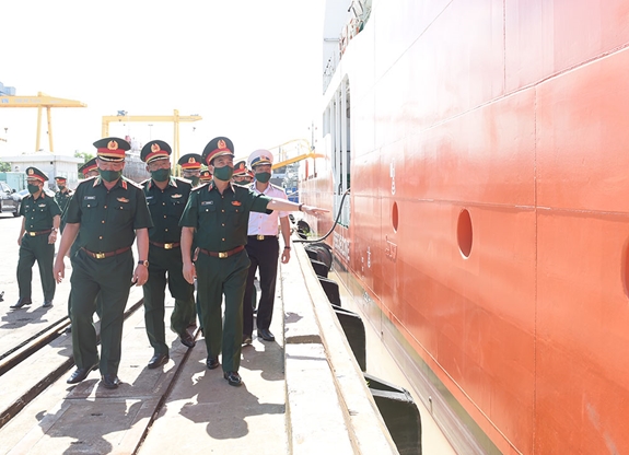 | Thượng tướng Phan Văn Giang tham quan tàu do Nhà máy Z189 thiết kế, chế tạo. |
