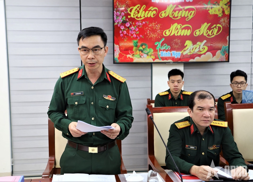 Báo cáo công tác sẵn sàng chiến đấu và tổ chức Tết Nguyên đán Bính Ngọ 2026 của đơn vị, Thượng tá Hồ Ngọc Duy, Chỉ huy trưởng Trung tâm 386 cho biết: Trung tâm đã quán triệt thực hiện nghiêm chỉ đạo của Thủ trưởng Bộ tư lệnh, triển khai xây dựng văn kiện, kiểm tra, bảo đảm các hệ thống trang bị hoạt động ổn định, làm tốt mọi công tác chuẩn bị cho nhiệm vụ sẵn sàng chiến đấu và triển khai các hoạt động vui xuân, đón Tết cho bộ đội theo đúng phương châm “Sẵn sàng chiến đấu cao, quản lý không gian mạng chặt chẽ, kỷ luật nghiêm, đoàn kết, an toàn, tiết kiệm”.