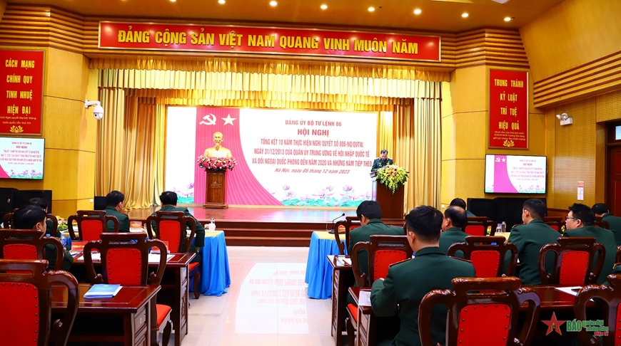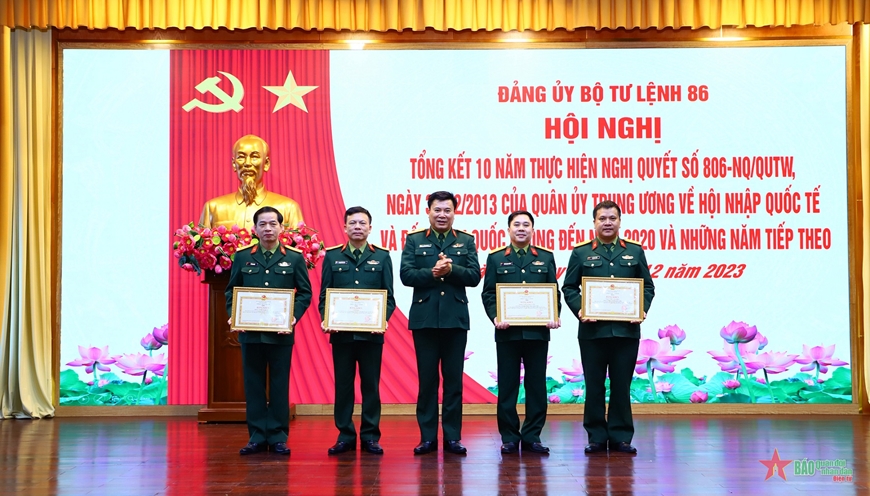 Báo cáo của Đảng ủy Bộ tư lệnh 86, khẳng định, trong những năm qua, Đảng ủy, Bộ tư lệnh 86 đã quán triệt, triển khai thực hiện nghiêm túc Nghị quyết số 806 và các nghị quyết, chỉ thị của cấp trên về thực hiện công tác hội nhập quốc tế và đối ngoại quốc phòng. Chủ động quán triệt, triển khai thực hiện đồng bộ, kiên quyết, tích cực, sáng tạo, xây dựng Bộ tư lệnh tiến lên hiện đại.