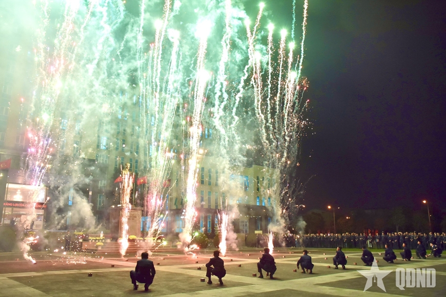 | Các cán bộ, chiến sĩ Bộ tư lệnh Cảnh sát biển Việt Nam xem bắn pháo hoa. |