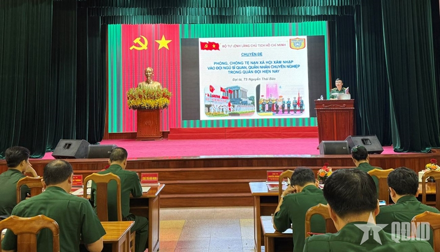 Sáng 1-10, Bộ tư lệnh Lăng Chủ tịch Hồ Chí Minh tổ chức Hội nghị học tập, nghiên cứu chuyên đề năm 2025 cho gần 300 cán bộ, sĩ quan, quân nhân chuyên nghiệp của đơn vị. Đại tá Đỗ Hoàng Việt, Ủy viên Ban Thường vụ Đảng ủy, Phó chính ủy Bộ tư lệnh Lăng Chủ tịch Hồ Chí Minh dự và chủ trì hội nghị.