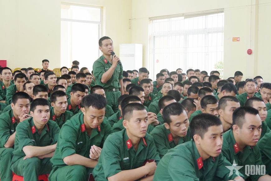 | Chiến sĩ mới Trung đoàn 244 (Bộ CHQS tỉnh Quảng Ninh) phát biểu ý kiến. |