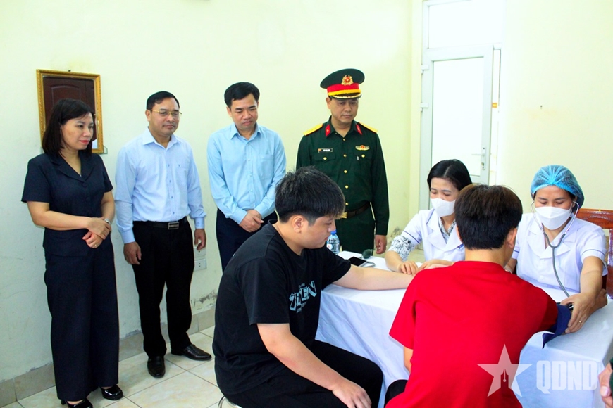 | Đoàn kiểm tra công tác tổ chức khám tuyển tại điểm khám Trà Lý. |