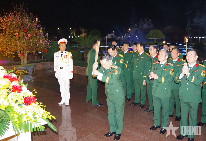 | Trung tướng Lương Văn Kiểm, Tư lệnh Quân khu 3 cùng thủ trưởng các cơ quan Quân khu dâng hoa, dâng hương tại tượng đài Chủ tịch Hồ Chí Minh. |