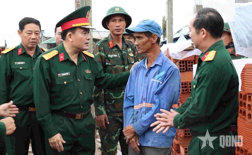 Thay mặt Bộ tư lệnh Quân khu, Đại tá Trần Minh Trọng, Phó chính ủy Quân khu 5 đến nắm tình hình, thăm hỏi và tặng quà cán bộ, chiến sĩ các đơn vị thuộc Quân đoàn 34, Vùng 3 Hải quân và Bộ CHQS tỉnh đang hỗ trợ gia đình ông Lê Văn Mười (thôn Dương Xuân, phường An Nhơn Bắc), bà Lê Thị Cúc (thôn Giang Bắc, xã Tuy Phước Bắc) và bà Nguyễn Thị Thu Hồng (thôn Lạc Điền, xã Tuy Phước Đông) xây dựng lại nhà ở sau thiên tai.