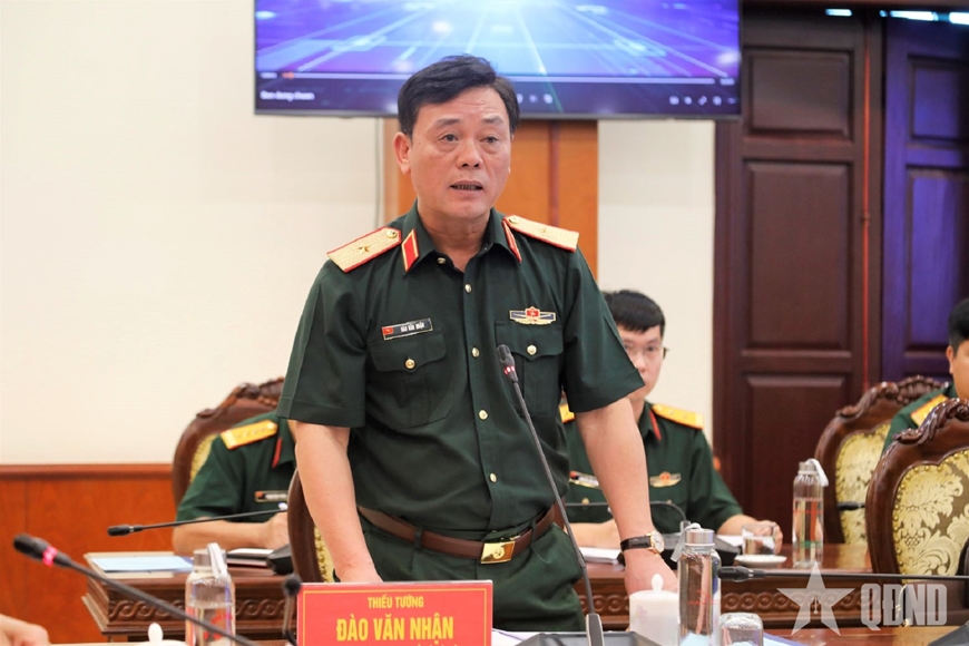 Thiếu tướng Đào Văn Nhận, Tư lệnh Bộ tư lệnh Thủ đô Hà Nội phát biểu tại hội nghị. |