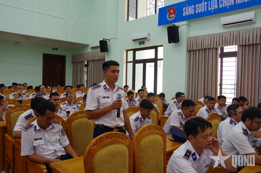 Cán bộ, chiến sĩ Hải đoàn 11 tham gia ý kiến phát biểu đối thoại với Thủ trưởng Bộ tư lệnh Vùng.