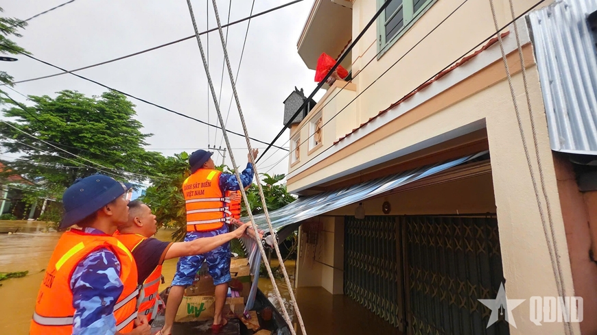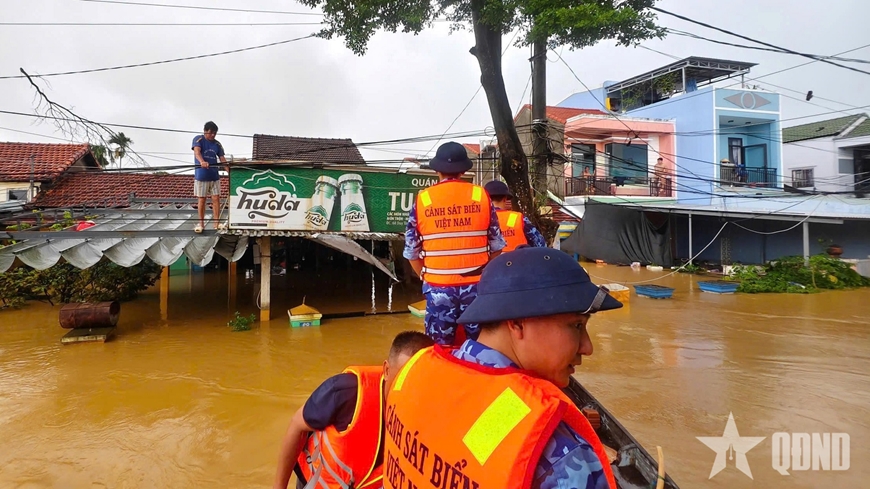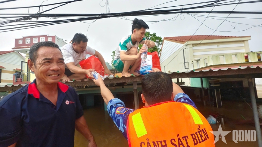 Trước tình hình diễn biến phức tạp của mưa lũ trên địa bàn thành phố Đà Nẵng, ngày 30-10, Bộ tư lệnh Vùng Cảnh sát biển 2 triển khai 20 cán bộ, chiến sĩ Hải đoàn 21, phối hợp với cấp ủy, chính quyền địa phương cứu trợ nhân dân vùng ngập lụt tại phường Hội An Tây.