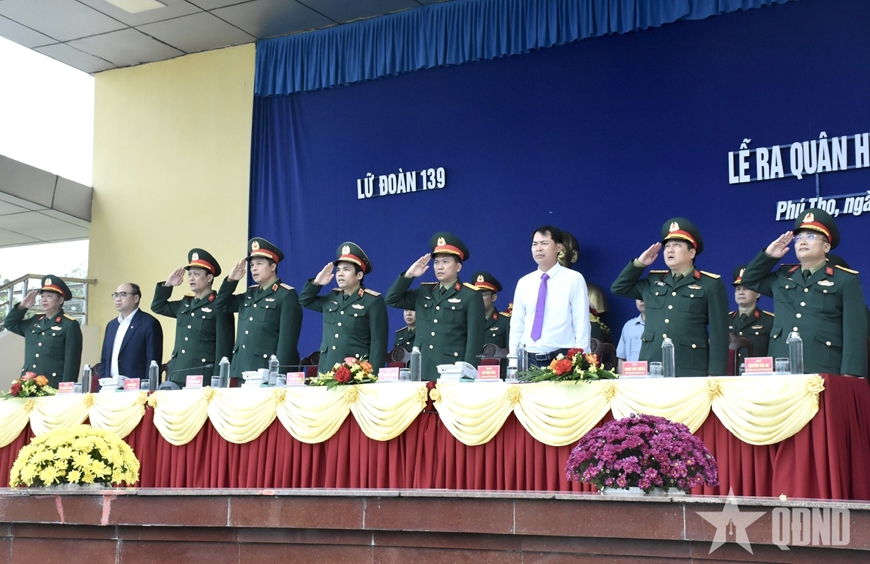 Thiếu tướng Vũ Viết Hoàng, Tư lệnh Binh chủng Thông tin liên lạc dự và phát biểu chỉ đạo tại điểm cầu Lữ đoàn 139. Cùng dự có Thiếu tướng Tạ Quang Thảo, Phó cục trưởng Cục Quân huấn - Nhà trường, Bộ Tổng Tham mưu.