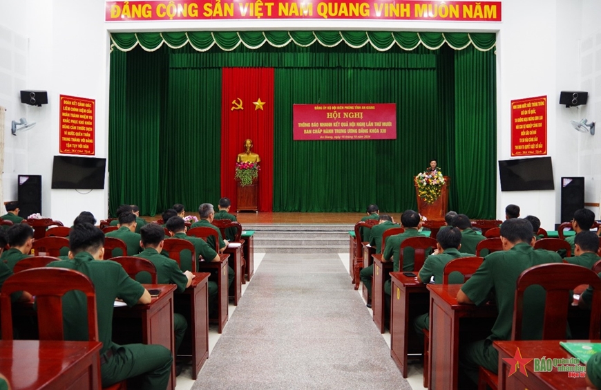 * Sáng 15-10, Đảng ủy Bộ đội Biên phòng (BĐBP) tỉnh An Giang tổ chức Hội nghị thông báo nhanh kết quả Hội nghị lần thứ 10 Ban Chấp hành Trung ương Đảng khóa XIII tới cán bộ, chiến sĩ khối cơ quan BĐBP tỉnh.