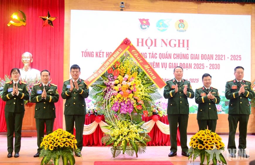 Bộ tư lệnh Binh đoàn 12 tặng hoa chúc mừng các tổ chức quần chúng.