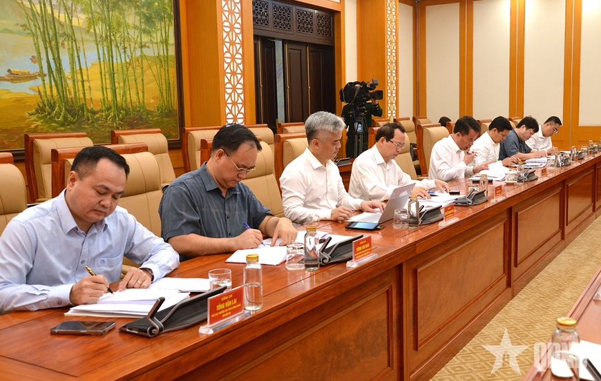 Thượng tướng Nguyễn Quang Ngọc, Ủy viên Trung ương Đảng, Thứ trưởng Bộ Quốc phòng và đồng chí Nguyễn Thế Mạnh, Phó trưởng ban Chính sách, chiến lược Trung ương đồng chủ trì hội nghị.