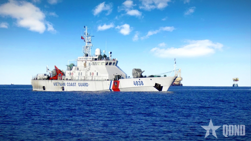 | Tàu CSB 4038 thực hiện nhiệm vụ trên biển. |