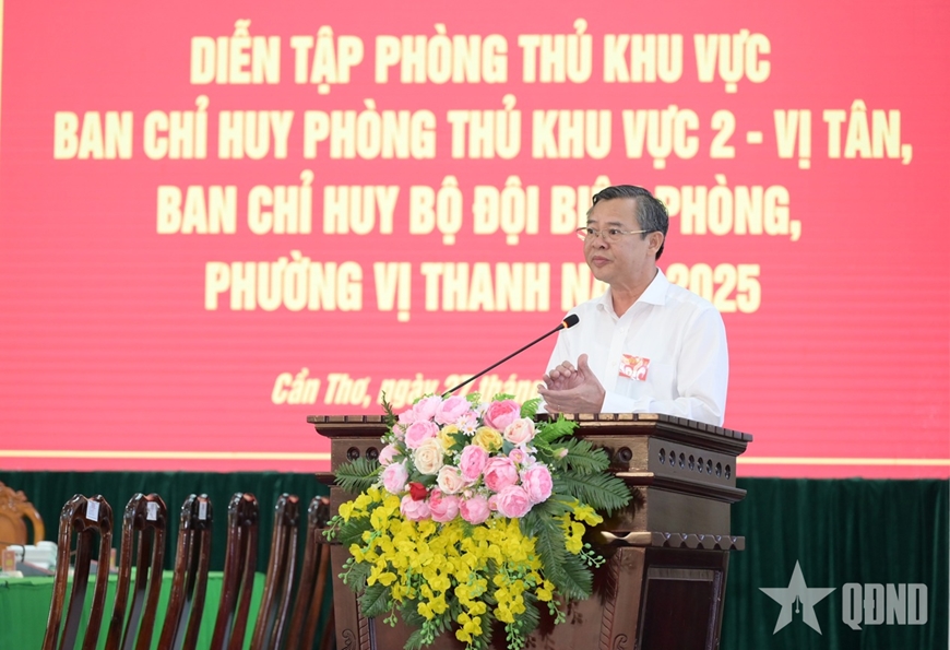 Sáng 27-11, Bộ tư lệnh Quân khu 9 chỉ đạo Bộ CHQS TP Cần Thơ tổ chức khai mạc diễn tập phòng thủ khu vực cho Ban chỉ huy Phòng thủ khu vực 2 - Vị Tân, Ban chỉ huy Bộ đội Biên phòng và diễn tập tác chiến phường Vị Thanh trong khu vực phòng thủ năm 2025. Trung tướng Nguyễn Xuân Dắt, Tư lệnh Quân khu 9 dự, chỉ đạo diễn tập.