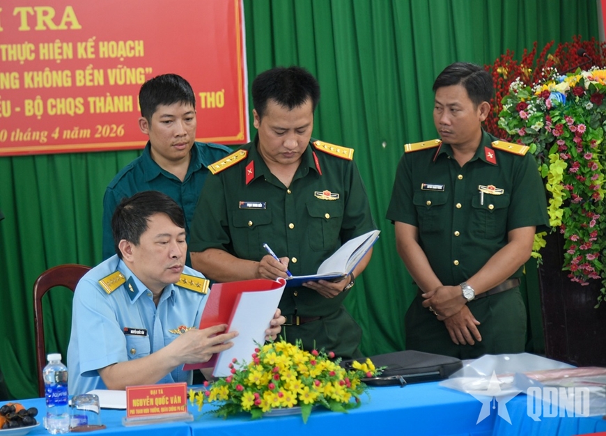 Ngày 10-4, đoàn công tác Bộ Tổng Tham mưu do Đại tá Nguyễn Văn Trường, Phó cục trưởng Cục Tác chiến làm trưởng đoàn đến kiểm tra kết quả triển khai thực hiện kế hoạch tác chiến “Vòm phòng không bền vững” tại Bộ CHQS thành phố Cần Thơ.