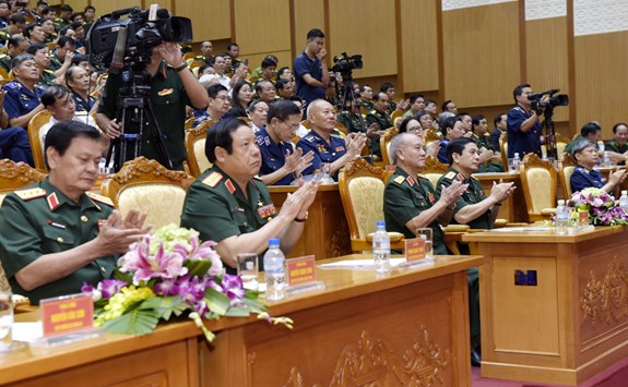 Các đồng chí lãnh đạo, nguyên lãnh đạo Bộ Quốc phòng và đại biểu dự lễ kỷ niệm. |