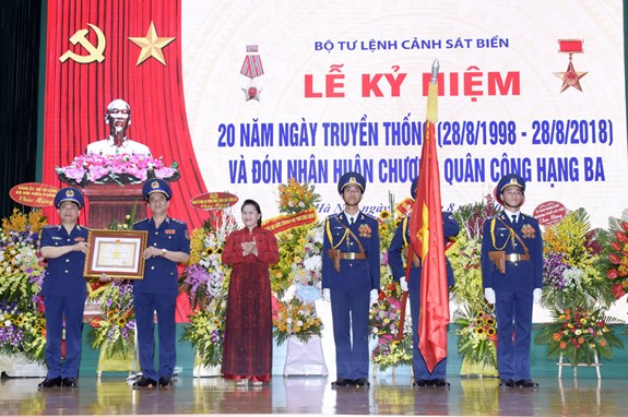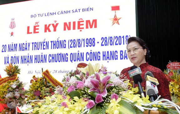 Phát biểu tại lễ kỷ niệm, thay mặt lãnh đạo Đảng, Nhà nước, Chủ tịch Quốc hội Nguyễn Thị Kim Ngân ghi nhận, đánh giá cao sự nỗ lực cố gắng, thành tích và những chiến công của lực lượng CSB Việt Nam trong suốt 20 năm qua. Chủ tịch Quốc hội nhấn mạnh, trước tình hình thế giới và khu vực diễn biến phức tạp, nhanh chóng, tình hình trong nước gặp không ít khó khăn, thách thức, nhưng lực lượng CSB đã làm tốt công tác tuần tra, kiểm tra, kiểm soát, thực thi pháp luật trên biển; đấu tranh, phòng, chống tội phạm, các hành vi vi phạm pháp luật; giữ gìn an ninh, trật tự, an toàn trên biển; tìm kiếm cứu hộ, cứu nạn; tham gia khắc phục sự cố môi trường biển; thực hiện tốt công tác đối ngoại quân sự, quốc phòng; tuyên truyền, phổ biến, giáo dục pháp luật trên biển... Đặc biệt, lực lượng CSB đã triển khai thực hiện tốt vai trò chủ trì bảo vệ chủ quyền bằng biện pháp pháp luật, tích cực phối hợp với các lực lượng, phát huy sức mạnh tổng hợp trong xây dựng thế trận an ninh nhân dân, xử lý các tình huống quốc phòng, an ninh trên biển, góp phần củng cố quốc phòng, an ninh của đất nước.