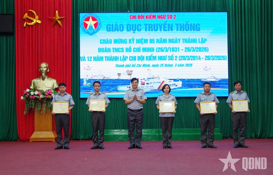 Chiều 25-3, tại TP Hồ Chí Minh, Chi đội Kiểm ngư số 2 tổ chức chương trình giáo dục truyền thống chào mừng kỷ niệm 95 năm Ngày thành lập Đoàn TNCS Hồ Chí Minh (26-3-1931 / 26-3-2026) và 12 năm Ngày thành lập Chi đội Kiểm ngư số 2 (28-3-2014 / 28-3-2026).