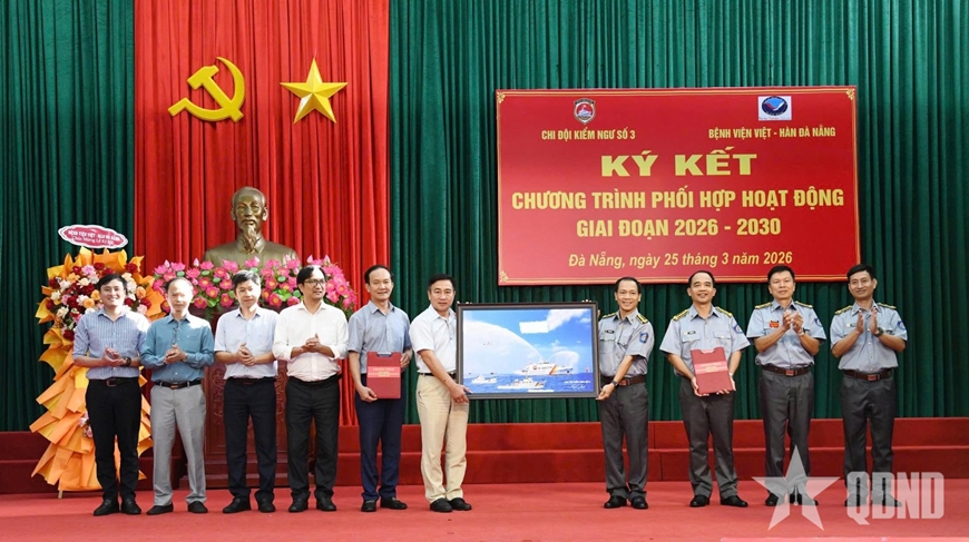 Các đồng chí: Lê Đại Nghĩa, Chi đội trưởng; Vũ Văn Tài, Bí thư Đảng ủy Chi đội Kiểm ngư số 3; Nguyễn Đình Hùng, Bí thư Đảng ủy, Giám đốc Bệnh viện Việt - Hàn Đà Nẵng dự, chủ trì lễ ký kết. Tham dự lễ ký kết có hơn 200 cán bộ, nhân viên, đội ngũ y, bác sĩ hai đơn vị.