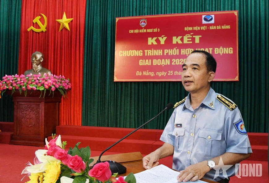 Phát biểu tại lễ ký kết, đồng chí Vũ Văn Tài, Bí thư Đảng ủy Chi đội Kiểm ngư số 3 khẳng định, đây là dấu mốc quan trọng, tạo nền tảng vững chắc để Chi đội Kiểm ngư số 3 và Bệnh viện Việt - Hàn Đà Nẵng gắn bó hơn nữa; mong muốn thời gian tới có nhiều hoạt động phong phú, ý nghĩa và thu hút đông đảo cán bộ, nhân viên, đội ngũ y, bác sĩ của hai đơn vị tham gia, góp phần nâng cao chất lượng hiệu quả thực hiện nhiệm vụ của hai đơn vị; xây dựng 2 đơn vị và địa phương ngày càng phát triển.
