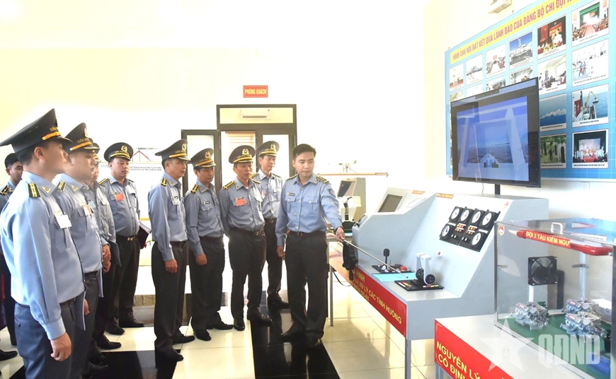 | Thủ trưởng Chi đội và các đại biểu tham quan mô hình huấn luyện |