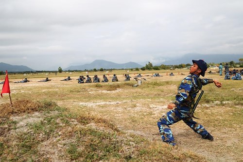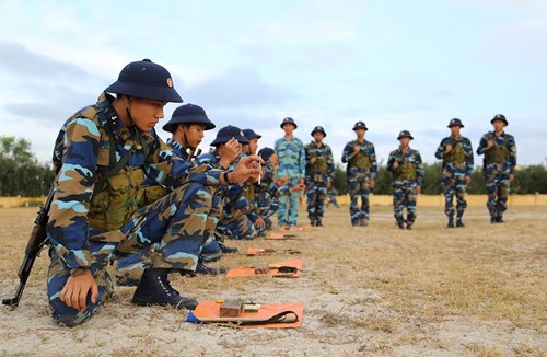 Đội hình tiểu đội thực hành liên kết đồ dùng gây nổ.