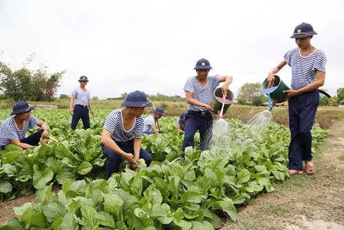 Tăng gia sản xuất cũng là một nội dung rèn luyện của chiến sĩ mới.