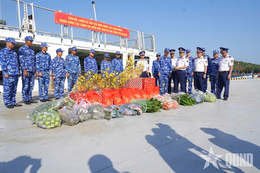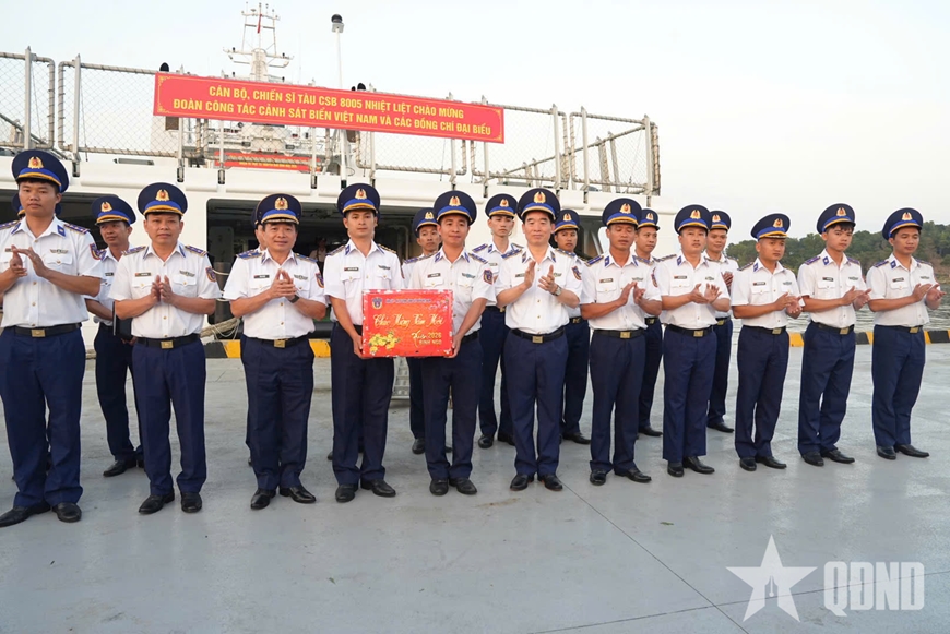 Đoàn công tác kiểm tra công tác chuẩn bị đón Tết Nguyên đán Bính Ngọ của cán bộ, chiến sĩ tàu CSB 8005.