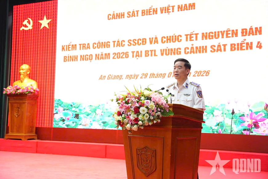 Đồng chí Chính ủy Cảnh sát biển Việt Nam yêu cầu Vùng Cảnh sát biển 4 duy trì nghiêm chế độ trực SSCĐ trong dịp Tết; tổ chức tốt các hoạt động vui xuân, đón Tết an toàn, tiết kiệm, lành mạnh; quan tâm chăm lo đầy đủ đời sống vật chất, tinh thần cho cán bộ, chiến sĩ, nhất là các lực lượng làm nhiệm vụ trực Tết trên biển, đảo, vùng xa. Đồng thời, tiếp tục quán triệt, thực hiện nghiêm các chỉ thị, mệnh lệnh của cấp trên; giữ vững kỷ luật, kỷ cương; xây dựng đơn vị vững mạnh toàn diện, “Mẫu mực, tiêu biểu”.