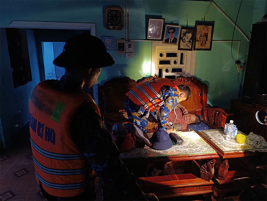 | Cán bộ quân y Hải quân đến tận nhà kiểm tra sức khỏe cho người dân. |