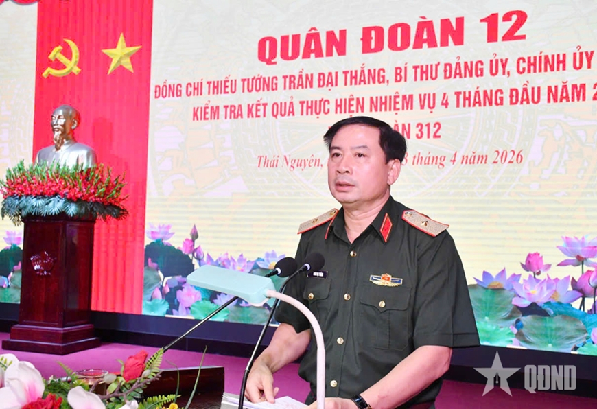 | Thiếu tướng Trần Đại Thắng, Bí thư Đảng ủy, Chính ủy Quân đoàn 12 kết luận kiểm tra kết quả thực hiện nhiệm vụ 4 tháng đầu năm tại Sư đoàn 312. |