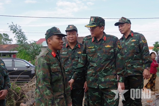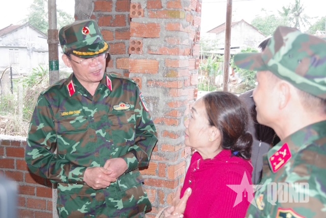 Tại các điểm đóng quân và công trình xây dựng, Thiếu tướng Lương Đình Chung, Chính ủy Quân khu 5 đã ân cần thăm hỏi đời sống, sinh hoạt, điều kiện ăn ở, làm việc của cán bộ, chiến sĩ; đồng thời nghe chỉ huy các đơn vị báo cáo kết quả thực hiện nhiệm vụ, cùng những khó khăn, vướng mắc trong quá trình triển khai công tác cần khắc phục. Bên cạnh đó, đồng chí Chính ủy Quân khu 5 cũng trực tiếp thăm hỏi, chia sẻ trước những mất mát, thiệt hại mà bà con nhân dân xã Hòa Thịnh, tỉnh Đắk Lắk phải gánh chịu do thiên tai gây ra.