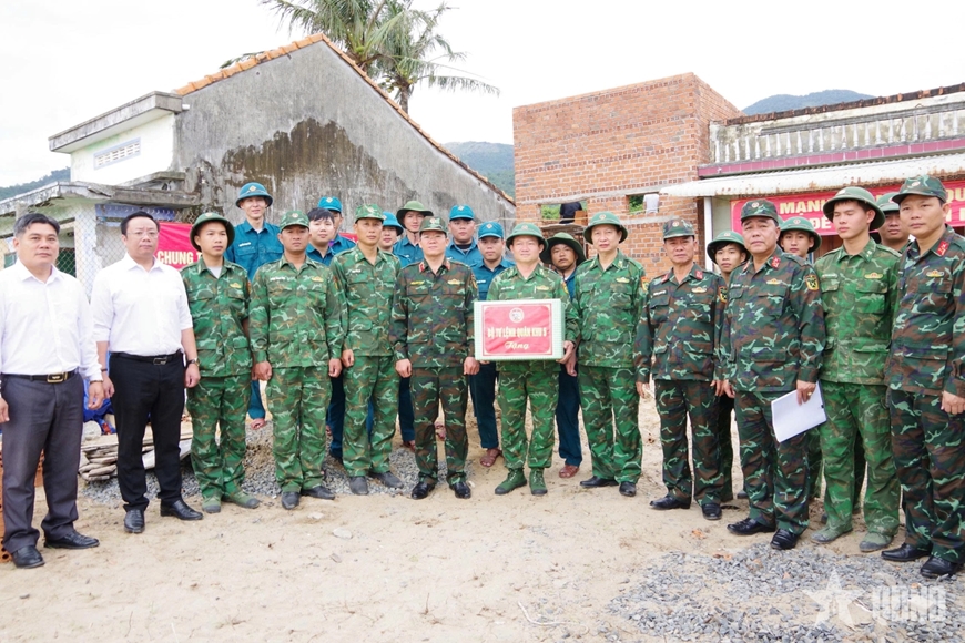 Sáng 30-12, Thiếu tướng Lương Đình Chung, Chính ủy Quân khu 5 đến thăm, kiểm tra và động viên lực lượng bộ đội đang làm nhiệm vụ xây dựng nhà cho nhân dân tại xã Đại Lãnh và xã Suối Hiệp, tỉnh Khánh Hòa.