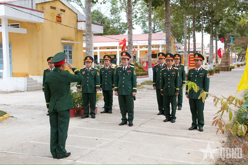 Trung tướng Hồ Văn Thái, Bí thư Đảng ủy, Chính ủy Quân khu 9 cùng đoàn công tác kiểm tra, động viên cán bộ, chiến sĩ thực hiện nhiệm vụ trực Tết tại Trung đoàn 9, Sư đoàn 8.