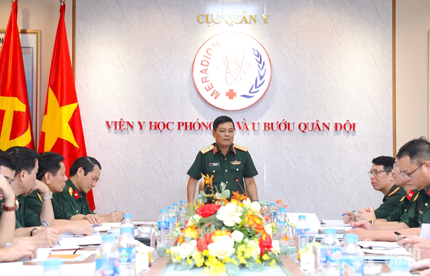 Qua kiểm tra thực tế tại Viện Y học phóng xạ và U bướu Quân đội, Trung tướng Trần Minh Đức ghi nhận, biểu dương sự nỗ lực và những thành tích mà Viện đã đạt được thời gian qua. Để hoàn thành tốt các mục tiêu của năm 2025, đồng chí Chủ nhiệm Tổng cục yêu cầu Viện tiếp tục tham mưu Cục Quân y về An toàn bức xạ và đề xuất kiểm tra an toàn bức xạ các cơ sở quân y dùng nguồn phóng xạ; triển khai huấn luyện ứng phó y tế sự cố bức xạ, hạt nhân cho các đơn vị phía Bắc theo kế hoạch của Cục Quân y; đảm bảo quân số, phương tiện cho Đội ứng phó y tế sự cố bức xạ, hạt nhân, 2 tổ cấp cứu cơ động, sẵn sàng đáp ứng tình huống đột xuất. Tiếp tục đẩy mạnh nghiên cứu về y học hạt nhân, phóng xạ và ung bướu, chú trọng gắn kết quả nghiên cứu với ứng dụng phục vụ đơn vị. Tổ chức tập huấn nâng cao chất lượng chăm sóc và an toàn người bệnh, huấn luyện kỹ năng giao tiếp…