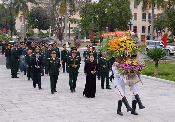 Nhân dịp này, Chủ tịch Quốc hội Nguyễn Thị Kim Ngân dâng hương, hoa tưởng niệm Chủ tịch Hồ Chí Minh trước tượng Bác đặt trong khuôn viên Quân khu 3.