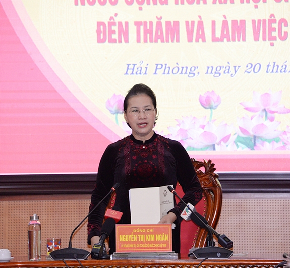 Tại Quân chủng Hải quân, thay mặt lãnh đạo Đảng, Nhà nước, Chủ tịch Quốc hội Nguyễn Thị Kim Ngân gửi tới lãnh đạo, cán bộ, sĩ quan, chiến sĩ, quân nhân chuyên nghiệp, công nhân, viên chức quốc phòng Quân chủng Hải quân lời thăm hỏi ân cần và lời chúc mừng tốt đẹp nhất.