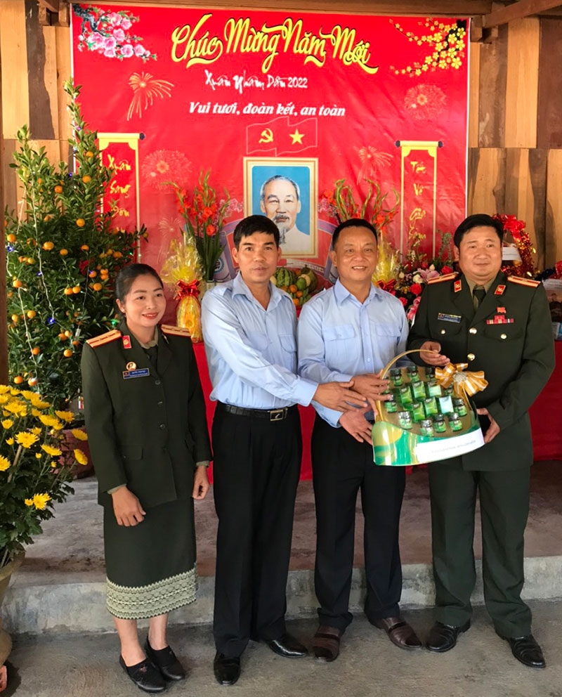 Một cái Tết xa nhà đối với cán bộ, chiến sĩ làm nhiệm vụ đặc biệt trên đất nước Lào. Tuy còn nhiều thiếu thốn, với thời tiết mùa khô nắng nóng của đất bạn, nhưng các cán bộ, chiến sĩ vẫn hết sức phấn khởi khi được đón nhận những tình cảm từ quê hương do đoàn công tác của Bộ Chỉ huy quân sự tỉnh mang đến.
