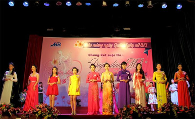 QĐND Online - Chiều 8-3, tại Hà Nội, nhân dịp Ngày Quốc tế phụ nữ, Ngân hàng TMCP Quân đội (MB) đã tổ chức vòng thi chung kết cuộc thi “Duyên dáng MB” với 20 thí sinh tham gia. Đây là những nữ cán bộ, nhân viên MB đã giành chiến thắng sau vòng thi sơ khảo với 218 thí sinh đến từ 60 đơn vị đầu mối trong toàn hệ thống. Vòng thi chung kết gồm 5 nội dung chính: Thi trang phục áo dài; Trang phục dạo biển, Trang phục dạ hội; Thi nữ công và ứng xử. Ban giám khảo gồm 5 thành viên: Đại tá Hà Thủy, Chỉ huy trưởng Phân hiệu 2 (TP Hồ Chí Minh) Trường Đại học Văn hóa nghệ thuật Quân đội; Đạo diễn Khải Anh; Á hậu Hoàng Oanh; Bà Cao Thị Thúy Nga, Phó chủ tịch HĐQT MBS; Ông Nguyễn Mạnh Hưng, Trưởng phòng Chính trị MB.