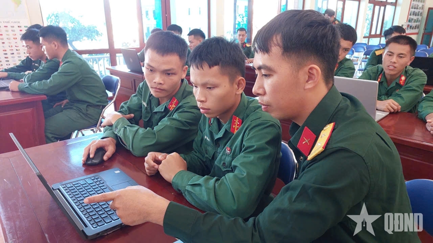 | Giờ học “Bình dân học vụ số” của bộ đội Trung đoàn 98, Sư đoàn 316, Quân khu 2. |